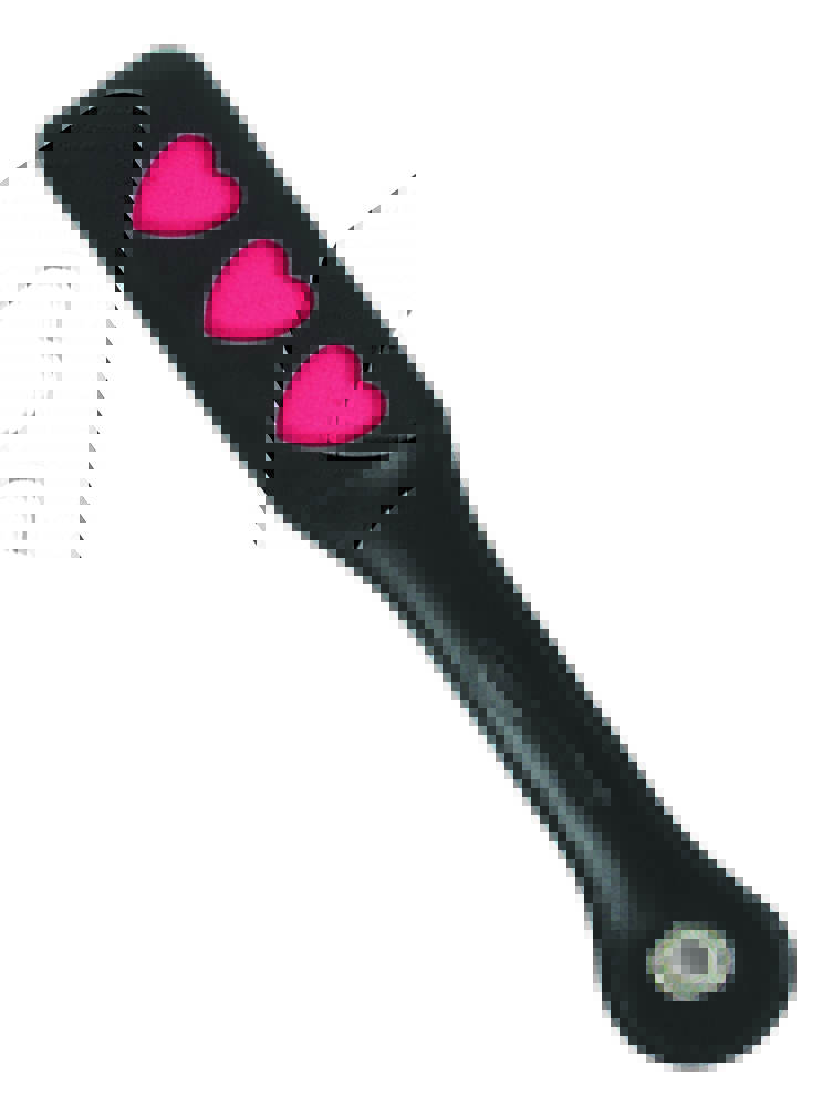 Impressions Heart Slapper Paddle.High quality, hand-stitched leather slapper leaves a great impression. High quality, tanned leather slappers have stitched handle and separate at the top. Called slappers because of the great sounds they make on your partner’s backside, these paddles will certainly help you leave your mark. Heart Impressions Slapper measures 12 inches long leather 2 flap slapper with 3 hearts cut out to leave an impression. Impressions Paddle from Sportsheets. Quality construction and material in a three heart slapper. Materials: Nylon cord, nickel free metal hardware, RBSE glass batten, cowhide leather paper red. Includes: 1 12 inch (30.48 cm) “heart” impression paddle. Sportsheets is a US based supplier of bedroom bondage and erotic fantasy equipment. Their mission is to enhance relationships by adding excitement to consensual adult play. For those interested in the lighter side of S&M play, this leather paddle is the perfect tool for adventuresome couples. Sportsheets is a US based supplier of bedroom bondage and erotic fantasy equipment. Their mission is to enhance relationships by adding excitement to consensual adult play. For those interested in the lighter side of S&M play, this small leather slapper is perfect for novice to experienced player. Keeping couples connected. Sportsheets redefining S&M. Limited Lifetime Warranty, Sportsheets will replace any defective product. If the product is not available, Sportsheets will replace it with a similar product of similar function. No video. 2021.