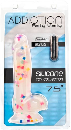 Addiction 100% Party Marty 7.5 inches Frost and Confetti from BMS Enterprises. The latest addition to the best selling Addiction collection of premium Silicone dongs, Party Marty is here! Allow me to introduce you to the life of the party, Marty! Party M