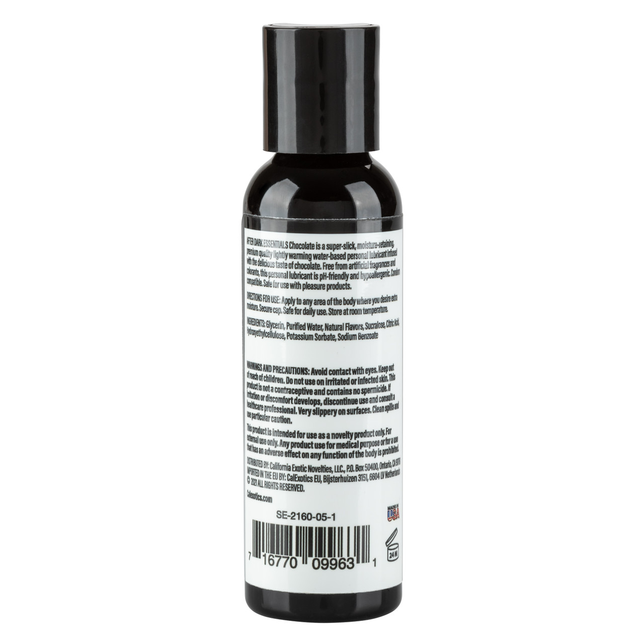 After Dark Essentials Chocolate Lube 2 ounces from California Exotic Novelties. Indulge in a truly delicious playtime experience when you grab the After Dark Essentials Chocolate Flavored Personal Lubricant. The premium water based formula is infused with 100% edible flavoring with an arousing light warming effect. The super slick lubricant enhances natural lubrication, moisturizes and leaves skin lickable soft. The light warming effect is made to arouse the senses and provide a pure, erotic stimulation to enhance your oral experience. Expertly created by the sexual health experts at Cal Exotics, the water based formula is pH friendly, safe for all skin types, and free from artificial fragrances and colorants. Made in the USA. How to use: use as needed to enhance intimacy and lubricate pleasure. Apply a small amount of flavor infused lube to desired area to lubricate, reapply as needed. Easily washes away with warm water. Color Clear. Measurements 2 fluid ounces. Weight 3.1 ounces. Package 1.25 inches by 1.25 inches by 4.56 inches. Categories: Water Based Lubricants, Flavored Lubricants, Warming, Tingling Lubricants, Xmas items. 2023.