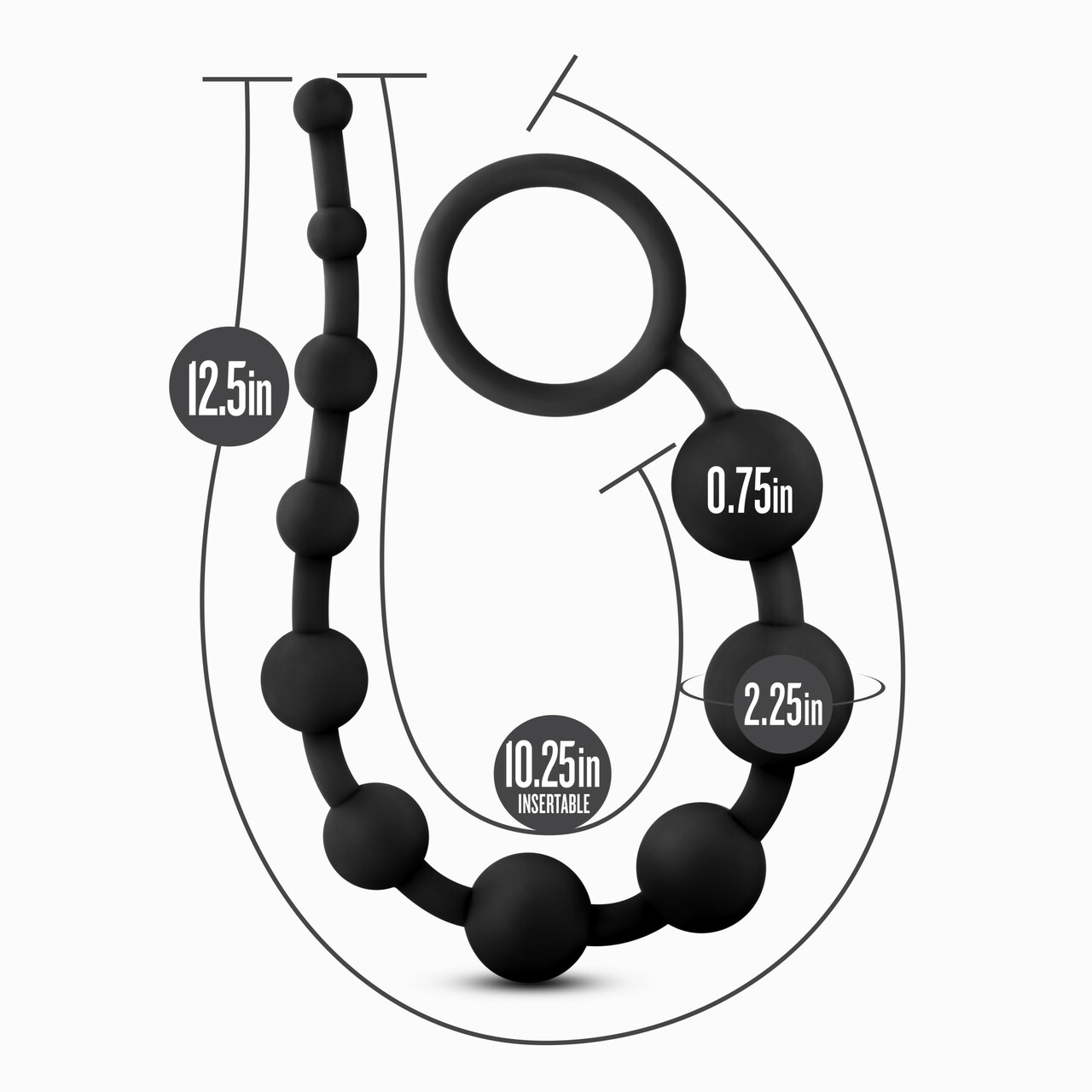 Anal Adventures Platinum Silicone 10 Anal Beads Black from Blush Novelties. For anyone looking to explore new anal sensations alone or with a partner! Anal Adventures provides many options to choose from. These beads will excite and stimulate as they are moved in and out. The Ultrasilk Silicone, with its silky smooth feel, warms with your body heat. Explore. Perfect for adding new sensations. Increase. Beads increase progressively in size for easiest insertion. Feeling. Beads arouse and excite as they are inserted or removed. Peace of mind. Made from UltraSilk Silicone and body safe ABS Plastic. Contains no phthalates or Latex. Size 12.5 inches in length, 10.25 inches insertable by 0.75 inch in width. Circumference 2.36 inches. 1 year warranty. Blush Novelties – Anal Adventure. Categories: Anal Toys, Anal Beads, Small, Medium Anal Beads, Sex Toys for Couples, Anal Sex Toys. Restricted, Amazon Restricted. 2024.
