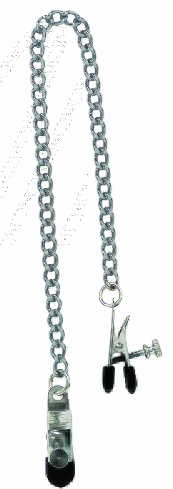 Adjustable Broad Tip Nipple Clamps with Link Chain. Adjustable nipple clamps offer a range of pressures, for a variety of sensations. These adjustable nipple clamps features a sturdy, durable link chain. Get ready for evenly distributed pleasure. The width of this clamp allows for a delicious distribution of sensation over the entire nipple. Relax and explore the breadth and depth of nipple sensation. Spartacus A Passion for Quality Catalog.