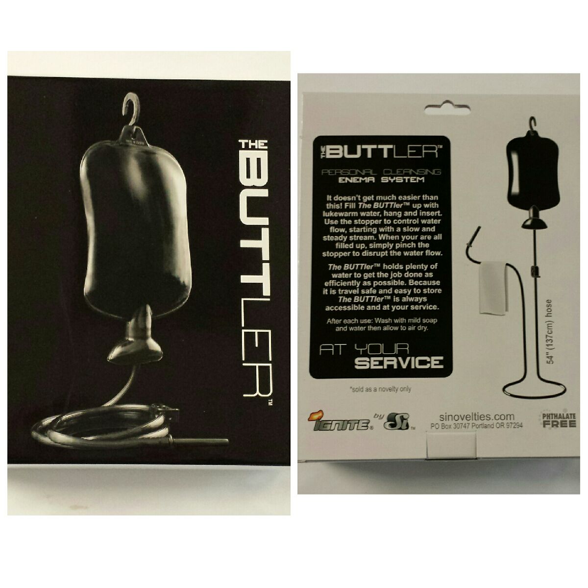Buttler Enema Bag it does not get any easier than this. Fill the Buttler up with lukewarm water, hang and insert. Use the stopper to control the water flow., starting with a slow steady stream. When you are all filled up, simply pinch the stopper to stop the water flow. The Buttler holds plenty of water to get the job done as efficiently as possible. Because it is travel safe and easy to store the Buttler is always accessible and at your service. After each use: wash with mild soap and water, then allow to air dry. At your service. 54 inches hose.