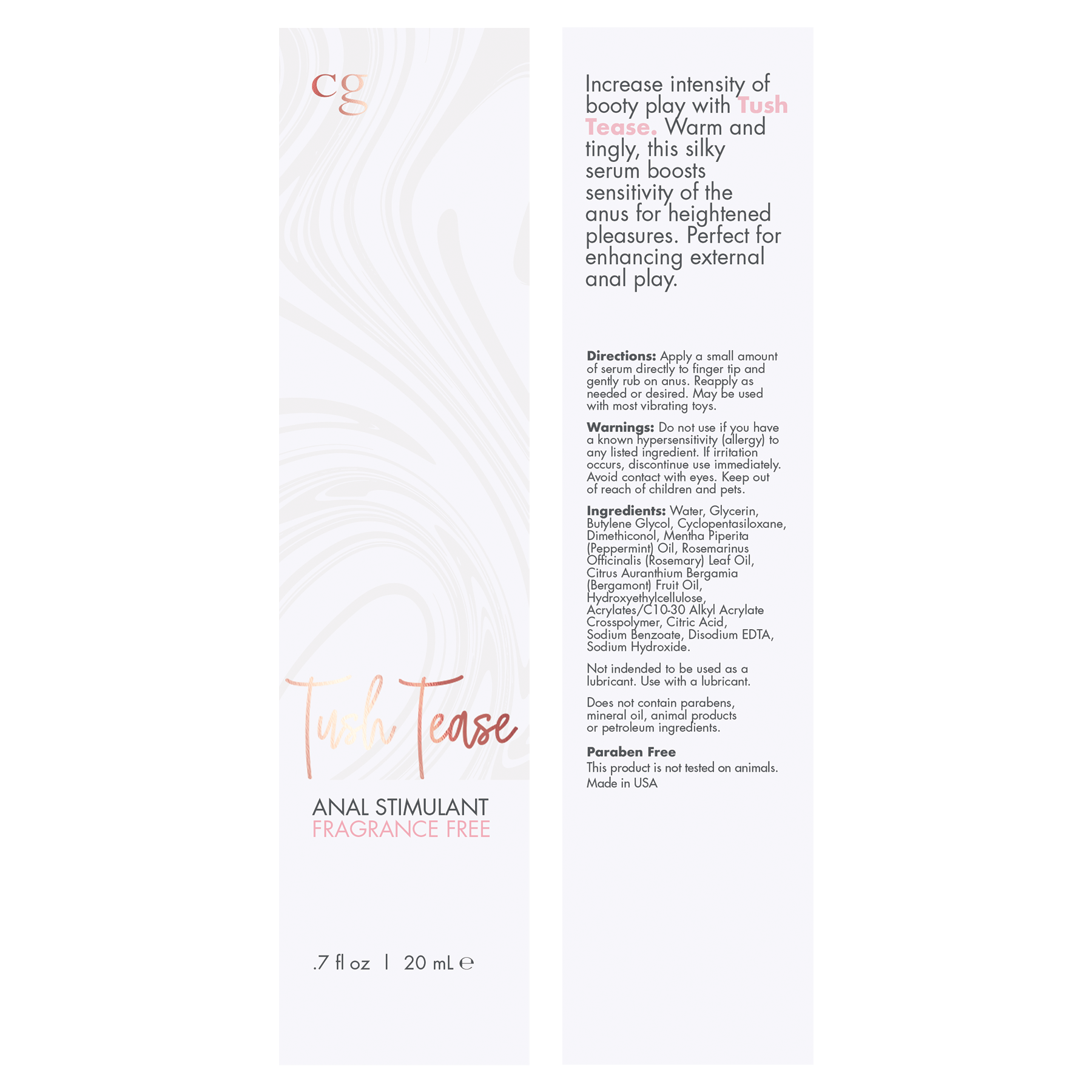 CGC Tush Tease Anal Stimulant Au Naturel .7 fluid ounce from Classic Erotica. Increase intensity of booty play with Tush Tease. Warm and tingly, this silky serum boosts sensitivity of the anus for heightened pleasures. Perfect for enhancing external anal