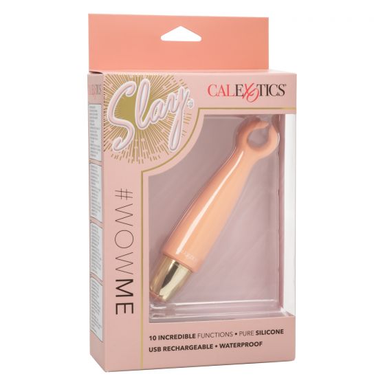 (WD) Slay #Wowme Vibrator from California Exotic Novelties. Slip the tickling Slay #Wowme into your luggage for knee shaking pleasure wherever you go. The tickling teaser fits between your fingers to let you deliver pinpoint tantalization and thrill with