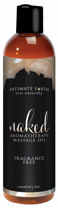 Intimate Earth love naturally Naked Unscented Massage Oil blend contains natural oils and certified organic extracts to soothe aching muscles and create a relaxing setting. Use on the body everyday after bath or shower for silky soft skin. Will not stain sheets. Ingredients: Prunus Amygdalus Dulcis Sweet Almond Oil, Helianthus Annuus Sunflower Seed Oil, Cocos Nucifera Coconut Oil, Tocopheryl Acetate Vitamin E, Helianthus Annuus Sunflower Seed Oil, Certified Organic Extracts Lycium Barbarum Goji Fruit, Cymbopogon Schoenanthus, Aloe Barbadensis Leaf. 240ml e or 8 fluid ounces.