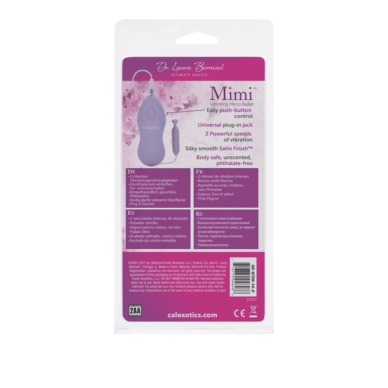 Dr. Laura Berman Intimate Basics Mimi Vibrating Bullet from California Exotic Novelties. Explore your intimate desires with the discreet Dr. Laura Berman Intimate Basics Mimi Vibrating Micro Bullet. The petite vibrating bullet stimulator is perfectly size