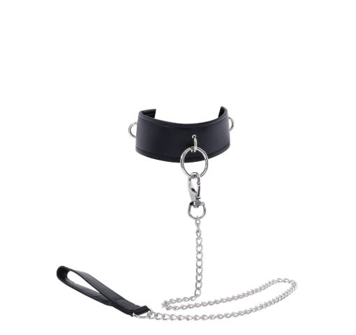 Command attention and obedience with the Edge® Collar and Leash, crafted for those who crave both comfort and control. This padded, thicker collar is designed for a secure yet comfortable fit, perfect for extended wear. The black faux leather is complemented by sleek silver metal hardware, including a large center ring for easy leash attachment. With two additional side connection points, this collar allows for more creative restraints and positions. Guide your submissive partner or make a bold statement—the Edge® Collar and Leash offers the ultimate tool for domination and versatility.