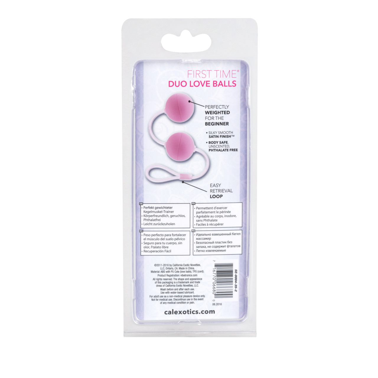 First Time Love Balls Duo Lovers Pink Pleasure Toys from California Exotic Novelties. Velvety soft pleasure products designed for First Time or experienced users. Perfectly weighted for the beginner. Sculpted to fit and pleasure your most intimate inner p