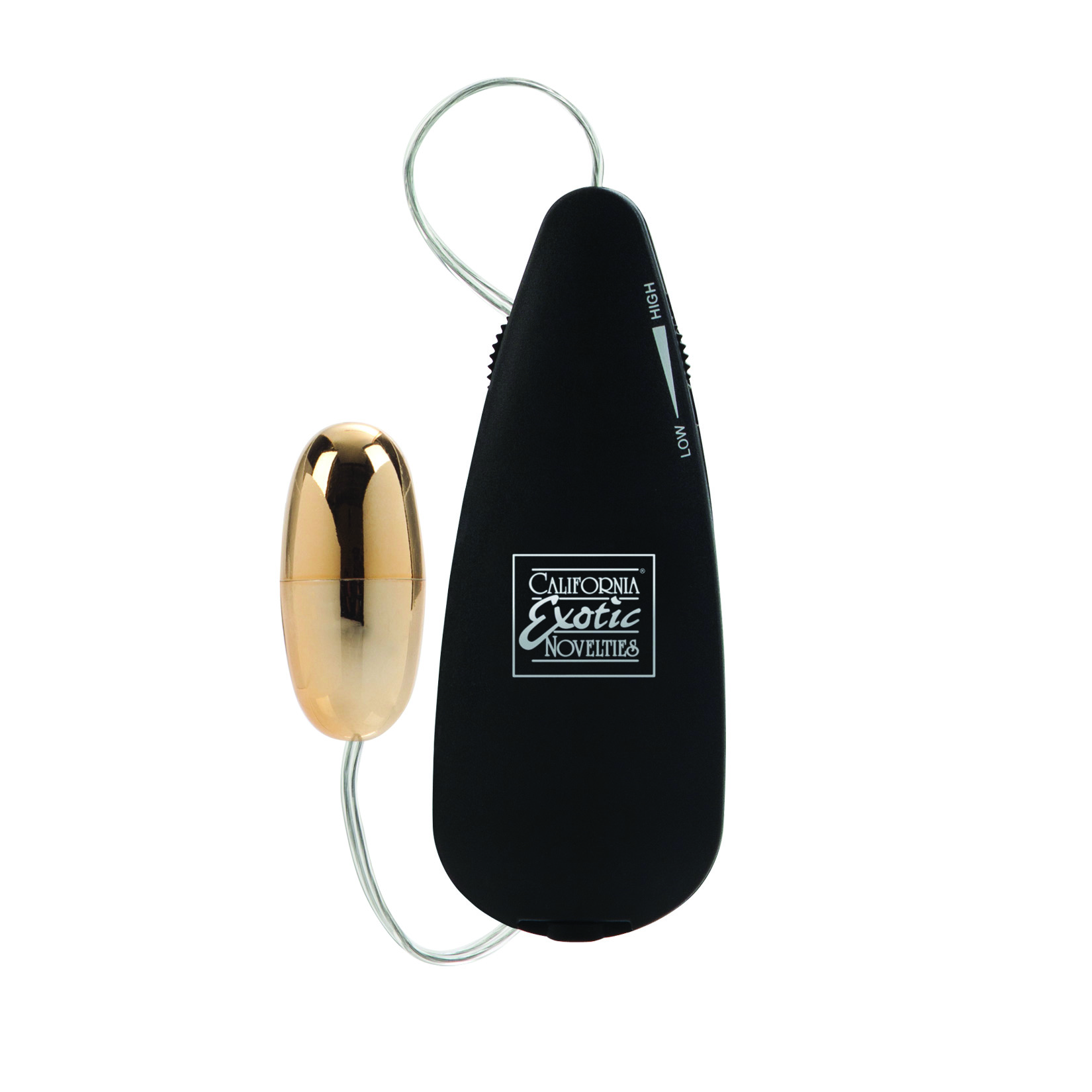 Golden Bullet Vibrator from California Exotic Novelties.Customize and adapt your intimate pleasure to suit, with the versatile Golden Bullet. The petite and powerful multi-speed Massager boasts intense vibrating action and is the perfect playtime companion for intimate exploration. Use the discreet travel sized Vibrator for erotic solo fun, and for exotic, sensual couple’s play. The sleek and compact stimulator is made from gold plated ABS Plastic, and is attached to a teardrop shaped, hand held ABS Plastic Controller with easy slide controls. The multi-speed Bullet Vibrator measures 2.2 inches by 1 inch and delivers intense stimulation sensations for ultimate internal and external satisfaction. 2 AAA batteries are required to power up the unforgettable tingles. The stimulator is easy to use and great for customizing your seductive experiences. The Bullet Vibrator packs intensely powerful vibrations, and is suitable for first time and experienced users. Use the love Bullet Vibrator to tease, please and satisfy your desires. Pop the bullet inside a pleasure product to maximize playtime fun, or use it for direct sweet spots and erogenous zones stimulation. To heighten the orgasmic vibrations, always use a quality water based personal lubricant with this adult toy. Clean the bullet with a toy cleaner spray before and after each use. Give your climax the Golden touch! Use it wherever you desire with the removable Golden Bullet. Put in in your favorite pleasure device or use on your favorite erogenous zone and enjoy the vibrations only Swedish Erotica can deliver. Vibrator warning this Bullet is highly explosive. You will be amazed at the power contained within the compact bullet vibrator. It may be teeny, tiny, but this versatile personal massager provides sexual stimulation that is guaranteed to get you off. Vibrating sex toy requires 2 AAA batteries, not included. Do not leave batteries in the vibrator between uses. Safe and pure for body and pleasure. Made using phthalate free, non-toxic materials ABS Plastic Power Controller. ABS Plastic with Gold Plating. Bullet vibrator measures 2.2 inches long by 1 inch wide. Bulk weight: 2.2 ounces. Always clean before and after use. 1 year warranty. Golden Bullet Vibrator is a registered trademark for California Exotic Novelties. Sex toys and sexual wellness. Categories: Vibrators, Bullets, Eggs, Sex Toys for Couples, Men, Women, Vibrating Bullets and Eggs. 2023.