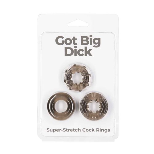 Got Big Dick 3 Pack Rings from BMS Enterprises. Key features: Cock rings. Super stretchy. Textured for added stimulation. Snug fit. Body safe material. Waterproof, non-vibrating cock rings. Value pack. Got Big Dick? Or as we like to call it back at headqu