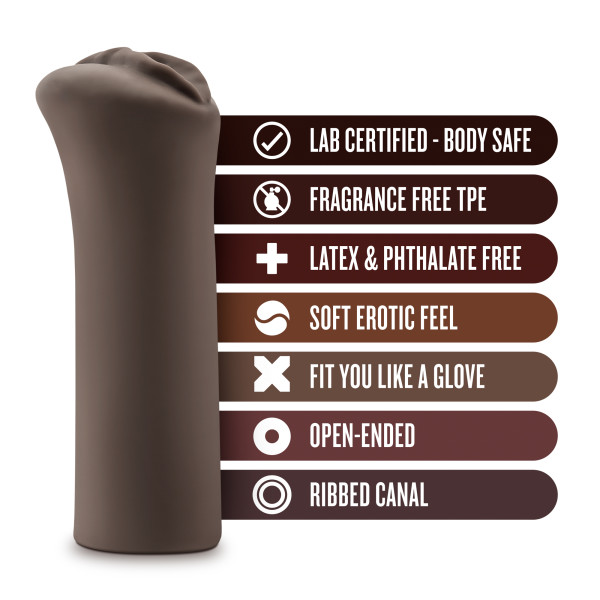 Hot Chocolate Nicole’s Kitty Chocolate Brown Vagina Stroker. I have a pussy and my name is Nicole, here kitty kitty kitty! Nicole’s Kitty is stretchy, sensuously soft, feels warm and real with an added inner ribbed canal, all together they massage your shaft for the utmost in intense stimulation for your handy job of making her purr. This tunnel of loving is 5.5 inches long, warms to the touch and is definitely slippery enough when wet, that you will cum again and again! Use it solo or have your lover do it for you and implement it in your foreplay sessions. It is about time you enjoyed a pussy that you can pop in to play with, whenever you want! Features: soft and will engulf your shaft. Love glove is ribbed to magnify the stroking sensation. Open ended to accommodate any length and would not you just love to see yourself squirt. Peace of mind. Made of body safe Thermoplastic Elastomers TPE. Contains no synthetic fragrance, phthalates or latex. It meets or exceeds International Product Safety Standards. It is your body be mindful of what you put in it. Warning! Tight like a virgin. Blush Novelties – Hot Chocolate. Categories: Masturbators, Masturbators, Pussy, Masturbation Sleeves. Restricted, Amazon Restricted. 2024.