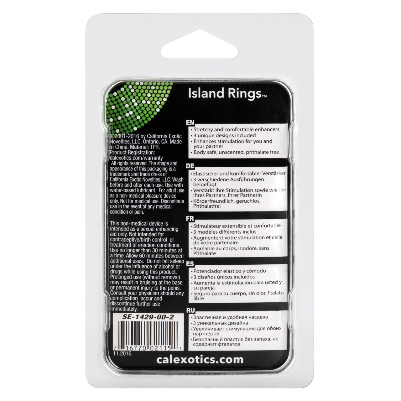 Island Rings Clear Set from California Exotic Novelties. Ring the changes with the exotic Island Rings. The trio of stretchy erection enhancers put you in full control of your stamina maintenance and stimulation pleasure. The small, medium and large size