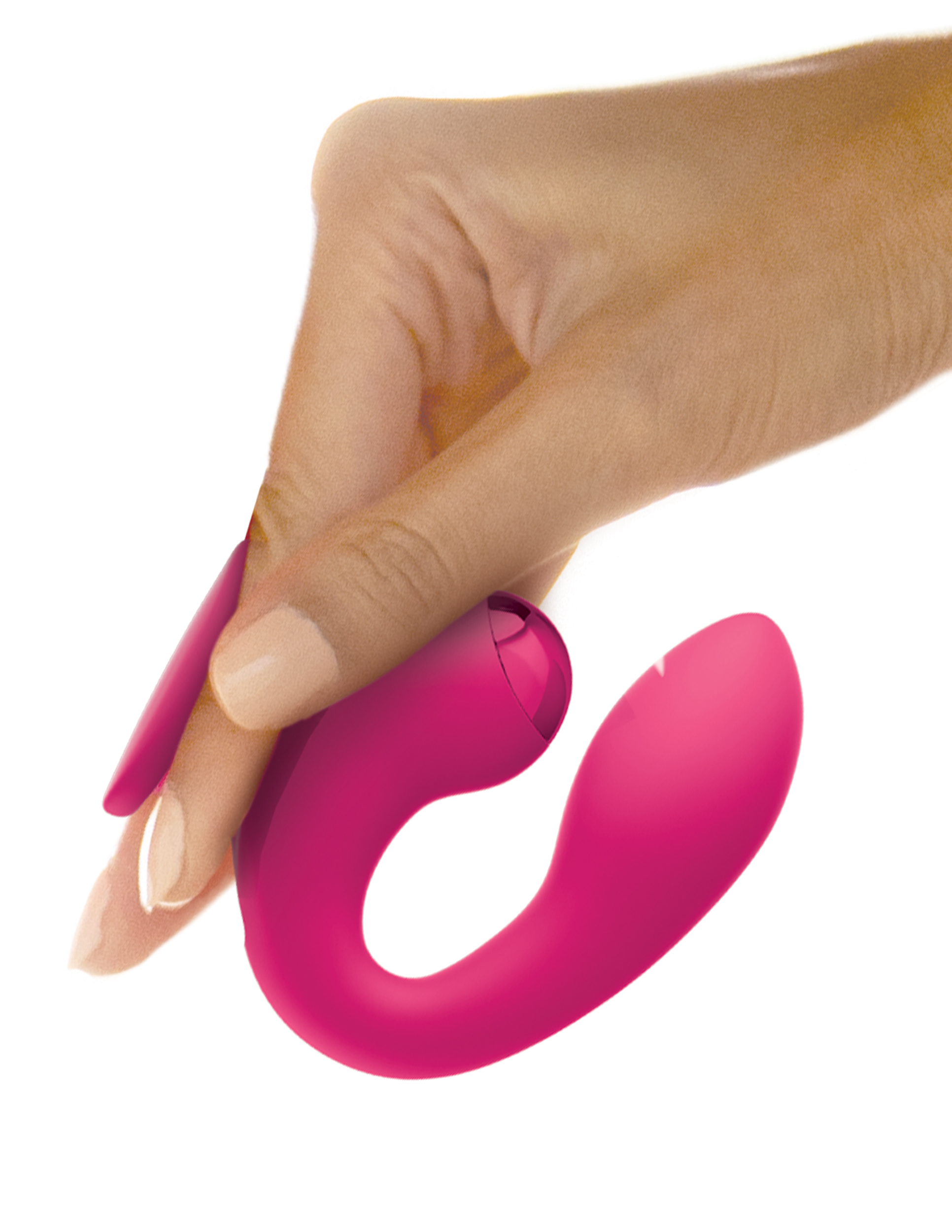 JimmyJane Dual Gripp Clitoral and G-Spot Vibrator from Pipedream Products. Featuring an innovative holder, the dual Gripp is designed to slip effortlessly between your fingers, allowing you to easily position the massager in a range of positions. The powe