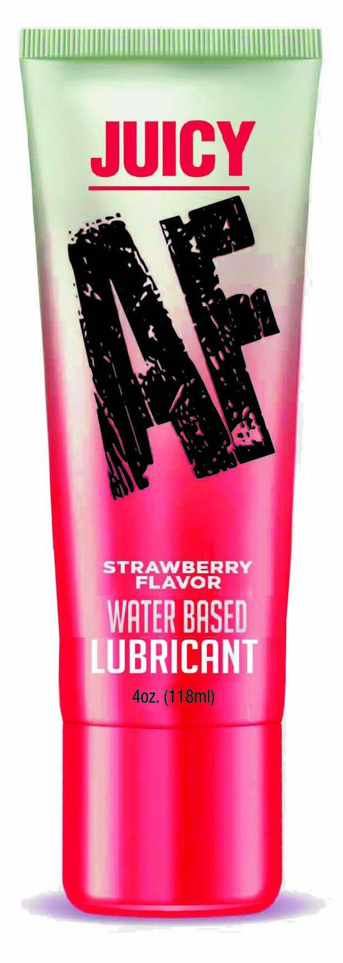 AF Lube Strawberry 4 fluid ounces. Juicy AF will make your intimate encounters more luscious. This water based lubricant effortlessly enhances the pleasures of intimacy. Make sex better with a little Juicy AF lubricant. Directions: apply a small amount on