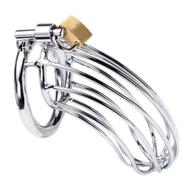 Lock your cock up with the Amos Cock Cage, Kink Collection’s premium metal chastity device. Slip the balls through the ring and slide into the weighted cage, fastening the bar with the padlock. Surrender all control to Amos.