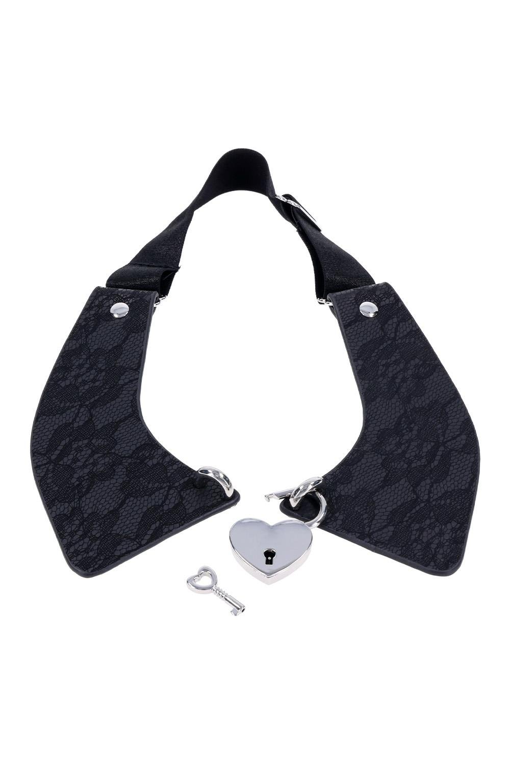 A symbol of devotion with a touch of edge. The Heartbound Lace Day Collar blends elegance and submission in a design that’s as stylish as it is sensual. Crafted from luxurious lace-etched faux leather, this collar features a polished silver heart lock a