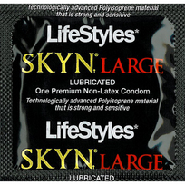 Lifestyles Skyn Large Condoms 12 Pack is the first premium condom made from polyisoprene, a scientifically formulated non-latex material that delivers the ultimate sensitivity that is the closest thing to wearing nothing. Polyisoprene material provides softer, more natural feel than latex. Clinically proven to enhance sensation. Combines the strength of premium latex with the sensitivity of an ultra thin condom for that Skyn-to-Skyn sensation. Ideal for people with latex allergies or latex sensitivity. Long-lasting, ultra smooth lubricant enhances the experience. A high quality alternative, Lifestyles Skyn are condoms that are made with a special polyisoprene material that transfers body heat well for more intimate sensations. Each lubricated condom is tested to ensure strength and durability, providing protection against STDs and pregnancy. Skyn condoms are completely latex free and a perfect choice for those with sensitivities, or a partner with allergies to latex. Type: Condoms Pack: 12 Special Features: Lubricated, Latex Free. Lifestyles Skyn Large Condoms 12 Pack.