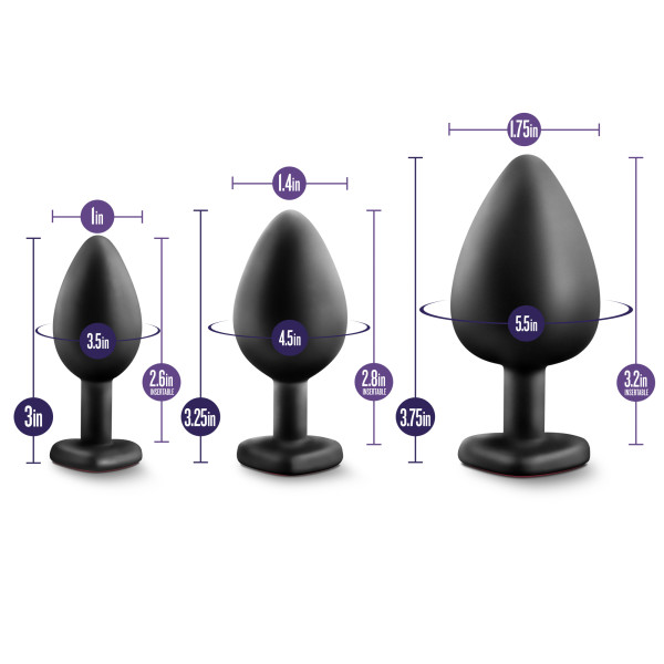 Luxe Bling Plugs Training Kit Black with Red Gems. Your anal training play just got pretty with this sweet set of Bling Plugs! Starting with the small size for beginners, you can slowly graduate to the medium size and then to the large size when you are