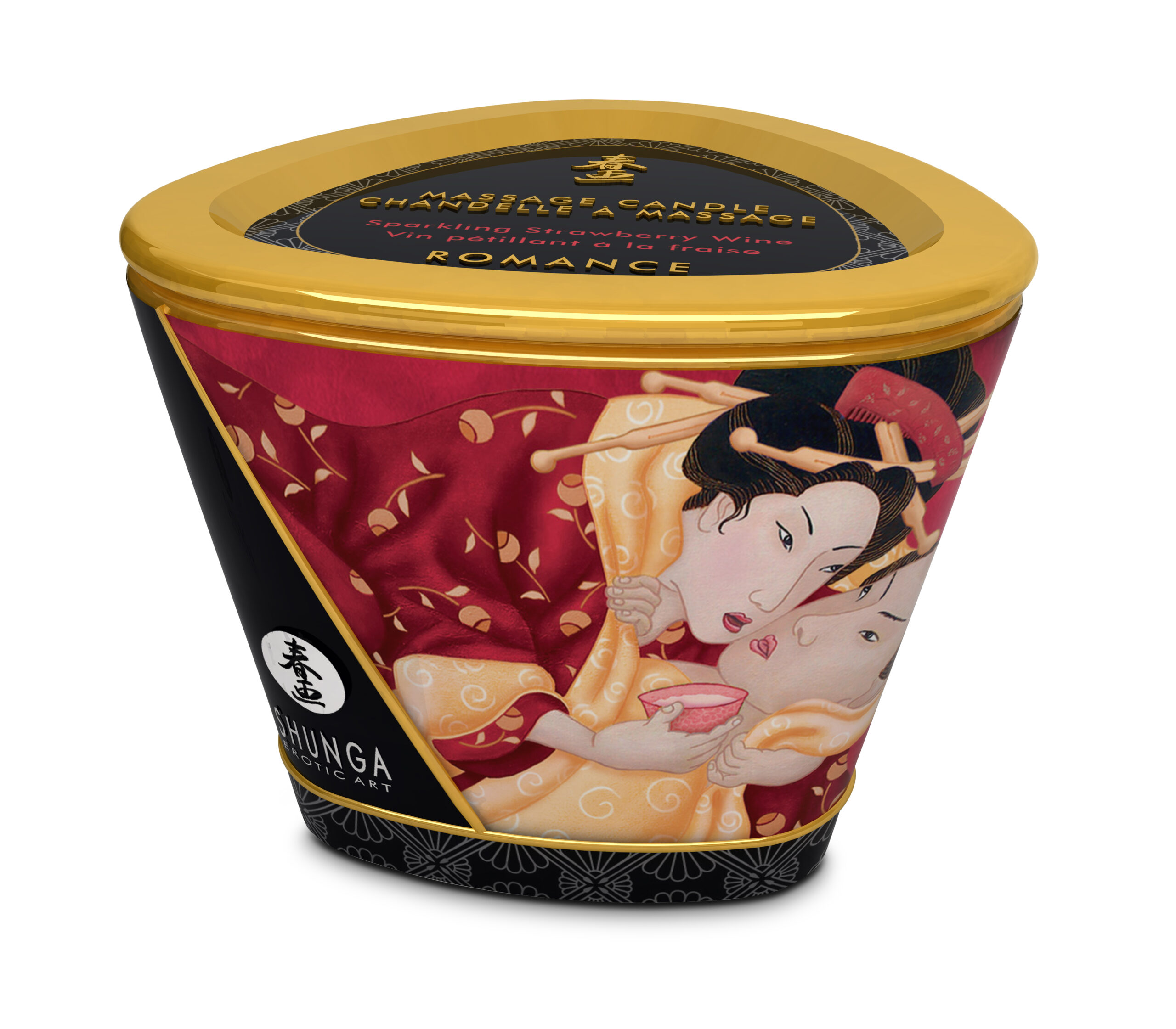 Shunga Erotic Art Massage Candle Sparkling Strawberry Wine 5.7oz. 100% natural oils. Produces a lukewarm oil at the touch. Leaves skin soft and silky. Burns for up to 40 hours. Will not clog pores. This soy based candle can be used both as an ambiance candle and intimate massage oil. Directions: Light the candle and let it burn for about 20 minutes. Extinguish the flame and pour a small quantity in the palm of your hand. Apply freely all over the body for a sensual massage. Ingredients: Ingredients: Hydrogenated Soybean Oi, Coconut Oi, Fragrance, Sweet Almond Oil, Safflower Oil, Avocado Oil, Sesame Oil, Grape Seed Oil, Vitamin E Tocopherol, Benzyl Alcohol, Cinnamyl Alcohol, Citral, Amylcinnamyl Alcohol, Eugenol, Isoeugenol, Benzyl Salicylate, Cinnamal, Coumarin, D-Limonene, Geraniol, Benzyl Cinnamate, Lilial, Linalool, Benzyl Benzoate, Alpha Isomethyl Ionone, Methyl 2-Octynoate, Farnesol, Canola oil.