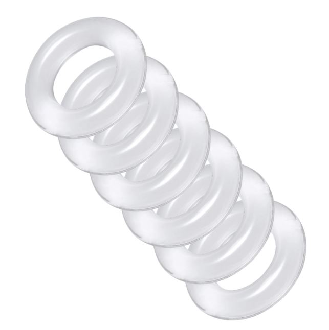 Discover new levels of pleasure with this customizable ball-stretching kit! Perfect for both beginners and those who want to push their limits, this set of six stretchy rings allows you to add tension one ring at a time. Find the perfect tugging sensation as your scrotum is pulled downward more and more with each ring you add. For even more excitement, use one as a cock ring to keep your member hard and pulsing with sensitivity while your balls are stretched.