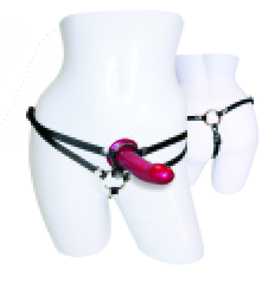 Sportsheets Menage A Trois Double Penetrating Harness. Fulfill a long overdue fantasy! Unique, innovative and truly original this is the worlds first and only double penetration harness. This thong-style harness, with built-in and interchangeable cock ring for the man to wear which also helps to aid in maintaining his erection longer. Double down for a dirty new doorway to penetrative pleasure! Break down barriers to your more devious fantasies with the Menage A Trois Double Dildo Set. Now you can enact the risque rapture of double penetration without introducing a third party to your relationship. The adjustable, thong style harness comes with a silicone dildo, two interchangeable nitrile rings, and two interchangeable metal rings. You and your lover will have all you need to create the perfect menage a trois fantasy while maintaining your comfort zone and keeping closely connected. Start small and work your way up to a longer, thicker dildo with the versatile and accommodating O rings. Use two dildos or insert your genitals into one of the rings. Adjusts to fit up to 60 inches hips and includes additional interchangeable metal and rubber O-rings which are 1.5 inches, 1.75 inches and 2 inches in width. Includes Flare Silicone Dildo realistically styled shape for smooth penetration 5.75 inches long, 1.25 inches diameter. Red Pearl phthalate-free, non-porous, hypoallergenic Sportsheets Menage A Trois Double Penetrating Harness is a registered trademark for Sportsheets. Keeping couples connected. Limited Lifetime Warranty, Sportsheets will replace any defective product. If the product is not available, Sportsheets will replace it with a similar product of similar function. No video. 2021.