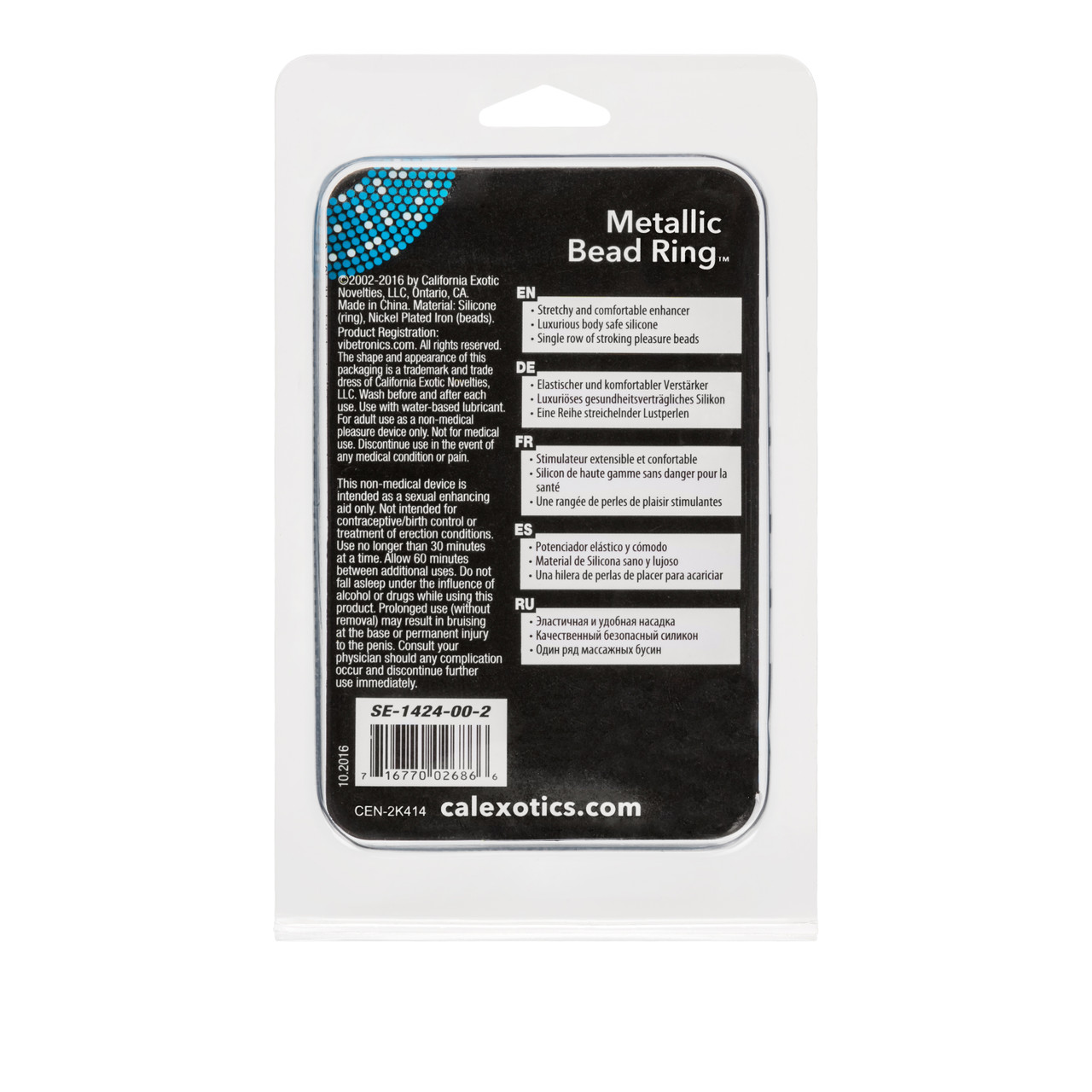 Metallic Bead Ring from California Exotic Novelties. Enhance your erotic encounters with the exotic Metallic Bead Ring. The stretchy and flexible erection enhancer is designed for intimate support and prolonged rock hard erections. The discreet Beaded Ring delivers tantalizing orgasmic sensations that stimulate your arousal and elevate your sensuous experiences. Slip the Ring on, and take full control of your pleasure, time and time again. Made from soft and smooth, superior Silicone, the Enhancer has a curvaceous tubed design and features 5 Steel stimulation Beads. The Enhancer Ring easily slides on to the erect Penis for instant and intense arousal assistance. The Metal Beads provide additional sensual stimulation during extended fun. Use your imagination and indulge in secret fantasies and wild dreams while the Ring supports and maintains your performance. For increased pleasure and heightened sensitivity, always use a quality water based personal lubricant with this sex toy. The reusable Enhancer is suitable for first time and experienced users, and great for spontaneous solo play. Use the enhancer during erotic intimacy with your lover, for prolonged mutual satisfaction and the ultimate climax experience. Before and after every use, remember to clean the enhancer with a toy cleaner spray or warm, soapy water. Rinse with warm water. Pat dry before storing. Stretchy is a Cock Ring with 5 Metal Beads. Safe and pure for body and pleasure. Made using phthalate free, non-toxic materials Silicone Ring, Steel Beads. Ring measures 1.25 inches in diameter. Bulk weight 0.5 ounce. Cock Rings when worn around the base of the Penis and Testicles, many users find that Cock Rings increase sexual pleasure. Prolong Rings, Erection Enhancement, Climax Control Rings, Cock Rings. Wash before and after each use. Always use a water based personal lubricant with this product for maximum pleasure. Important warning: this novelty product is intended as a sexual enhancing aid. Not intended for contraception, birth control or treatment of erection conditions. Use no more than 30 minutes at a time. Allow 60 minutes between additional uses. Do not fall asleep or be under the influence of alcohol or drugs while using this product. Prolonged use without removal may result in injury to the penis. Consult you physician should any complications should occur and discontinue use. Metallic Bead Ring is a registered trademark for California Exotic Novelties. Sex toys and sexual wellness. Categories: Bondage, Fetish, Kink, Love Rings, Sex Toys for Men, Cock Rings, Men’s Cock and Ball Gear. 2023.
