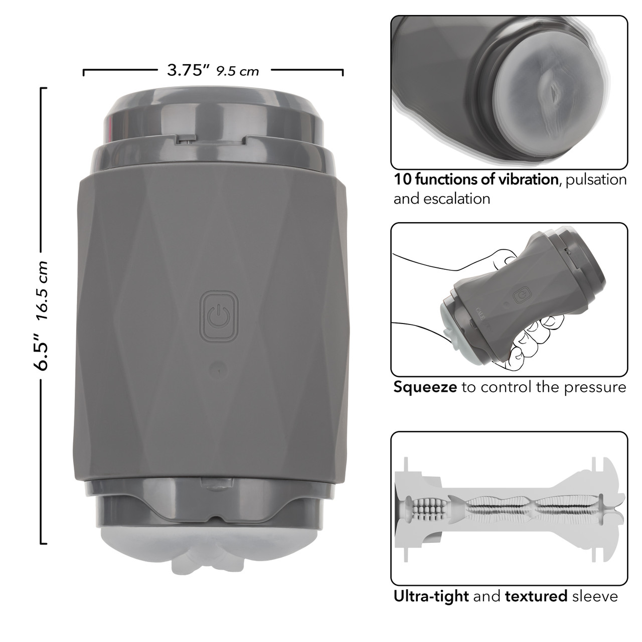 Unlock a world of tantalizing sensations with the Milk Master™ Vibro Squeeze Pussy, your new go-to for thrilling solo sessions. This self-contained, rechargeable dual-ended masturbator combines powerful vibrating action with a unique squeeze-to-control