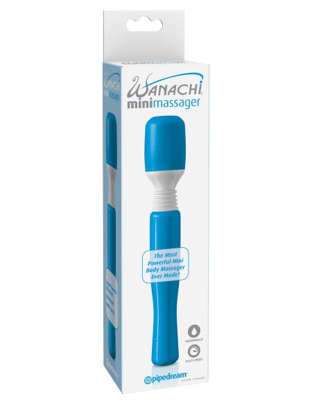 Mini Wanachi Blue Massager lets you enjoy soothing vibrations anywhere you go with this cordless mini massager. Powered by a whisper quiet motor, the Mini Wanachi massager is the premier choice for revitalizing tired muscles. Choose a variable speed that is right for you and enjoy the freedom of wireless stimulation. The relaxing vibrations relieve tension and reduce muscle fatigue, giving your aching body the recharge it deserves. Its flexible head lets you easily get to all the right spots where you need it most. Vibrator requires 2 AA batteries, not included. Do not leave batteries in the vibrator between uses. A water based lubricant is recommended. Vibrator is made using phthalate free, non-toxic materials ABS plastic handle, Thermoplastic Rubber TPR head. Specifications: length 8.25 inches, width 1.25 inches, height 1.25 inches, girth 4.25 inches, diameter 1.35 inches. Bulk weight 5.25 ounces. Package depth 2 inches, width 2.5 inches, height 10.5 inches. Packaged weight 6.25 ounces. Package type Box. Country of origin China. Mini Wanachi Waterproof Massager is featured in Pipedream Products Catalog A New Dimension in Pleasure, Wanachi. Colors may vary. 90 days warranty. Categories: Vibrators, Magic Wands, Body Massagers, Mini Body Massagers, Health and Beauty. 2022.