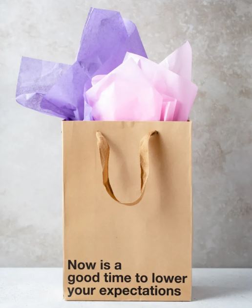 Add humor to your gifts with our “Now Is A Good Time To Lower Your Expectations” snarky gift bag! Perfect for gag gifts and a fun twist!