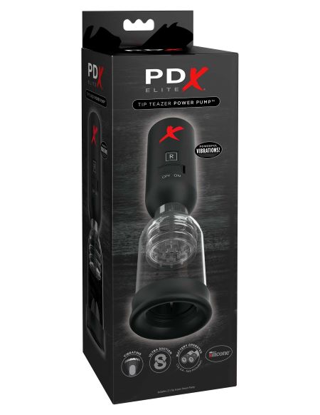 Experience intense pleasure right where you want it! Powerful vibration and amazing suction surrounds the head of your penis in pure satisfaction! Enjoy a powerful pleasure combination like never before with both intense vibration and incredible suction directly at the tip of your penis. The PDX Elite Tip Teazer Power Pump provides concentrated pleasure with a soft, flexible internal vibration pad covered in teasing pleasure nubs, and a smooth, stretchy Elite Silicone donut that snugly surrounds your penis head. With an easy on and off switch, and a release button that can be pulsed for additional stimulation, you can experience a vacuum tight seal and the best blow job of your life! Ultra strong suction. Experience ultimate pleasure exactly where you want it! The Elite Silicone donut provides a tight, vacuum seal. The quick release button immediately relieves suction and can be pulsed for extra stimulation. Powerful vibrations. The strong motor provides intense stimulation! Arousing vibrations travel through the soft internal vibration pad and stimulating pleasure nubs to tease and please your penis head. Uses 2 AA batteries, not included. Smooth and stretchy Elite Silicone. Elite Silicone is the most hygienic, body safe material available on the market today and provides a tight, snug seal. Be sure to use a water based lotion like Moist with this product. Care instructions: The donut sleeve is made from Elite Silicone, the most hygienic, body safe material available. Clean up is a snap after the fun with Refresh Toy Cleaner and warm water. Be sure to use a water based lotion like Moist with this silicone piece. Features and functions: Sucks and Pumps, Vibrates, One Touch Vibrator requires 2 AA batteries, not included. Materials Silicone sleeve, ABS Plastic case. Features and benefits: Ultra Strong Suction. Powerful Vibrations. Smooth‚ Stretchy Elite Silicone. Battery operated. Specifications operating instructions: The Elite Silicone donut provides a tight, vacuum seal. The quick release button immediately relieves suction and can be pulsed for extra stimulation. Pump uses 2 AA batteries, not included. Care instructions: the donut sleeve is made from Elite Silicone, the most hygienic material available. Clean up is a snap after the fun with warm water and antibacterial cleaner. Be sure to use a water based lubricant with this Silicone piece. Package includes: 1 Tip Teazer Power Pump. Categories: Sex Toys for Men, Penis Pumps, Male Pumps, Vibrating Pumps. PDX Elite Tip Teazer Power Pump from PDX Brands. PDX Brands: PDX Elite, PDX Plus, PDX Extreme, PDX Male, Fuck Me Silly, Ultimate Fantasy Dolls. Restricted, Amazon Restricted. 2022.
