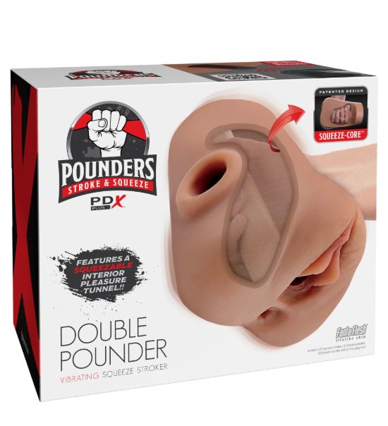 PDX PLUS DOUBLE POUNDER VIBRATING SQUEEZE STROKER BROWN
