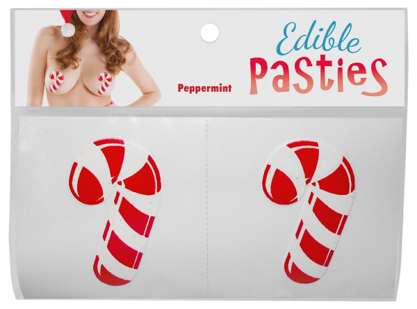 Edible Peppermint Pasties in the shape of candy canes from Kheper Games. Edible body pasties made into fun shapes for the Holidays. Enjoy them as mouth watering nipple treats. Categories: Adult Candy and Erotic Foods, Lingerie, Clothing, Xmas items, Pasti
