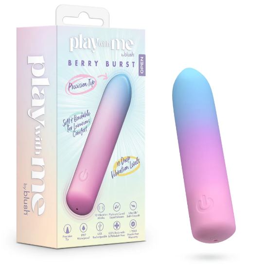 Revel in the radiant pleasure of Play With Me’s Berry Burst, a petite powerhouse that turns every touch into sweet indulgence. Designed for playful pleasure, this adorable, pocket-sized vibrator reveals 10 deep yet quiet vibration modes, with a precision tip for targeted sensations, guiding you to moments of pure bliss. Whether it’s slow, seductive foreplay, pinpoint clitoral stimulation, or sensual nipple pleasure, Berry Burst delivers focused vibrations exactly where you crave them most. Explore a range of sensations, from gentle pulses to deep, resonant thrills, to discover your ultimate pleasure points. Crafted from Blush’s Purio® platinum-cured liquid silicone, the vibrator’s lusciously soft and bendable design ensures sweet and customizable pleasure. Its IPX7 waterproof rating ensures adventurous play, and USB charging adds convenience. Experience the vibrant joy of Berry Burst and let every touch delight your senses, whisking you away to a world of sensual indulgence.