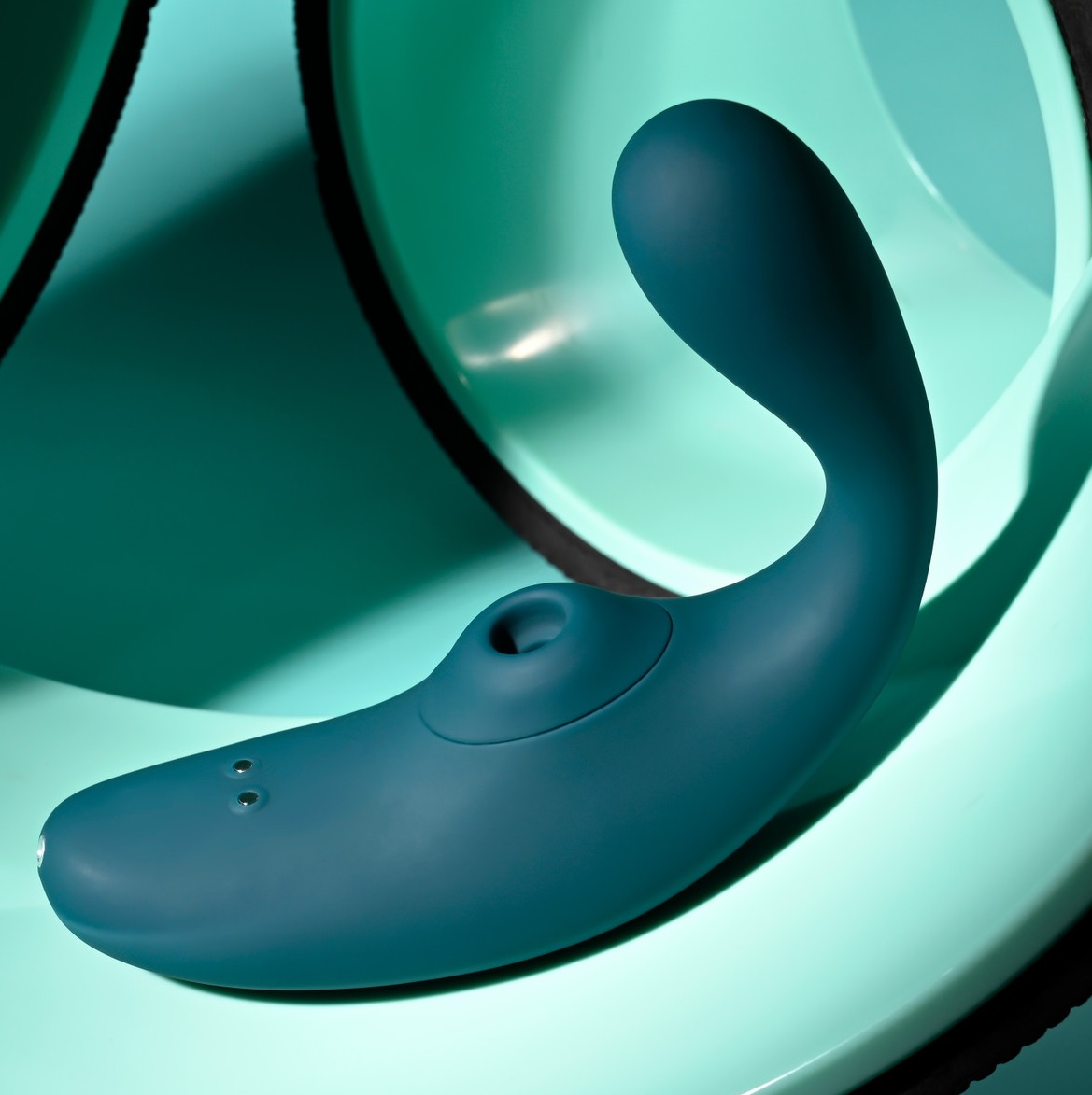 Surrender to this charming spin on the traditional dual vibrator. The Charmer lures you in with deep clitoral suction at its base, while the bulbous mini-shaft vibrates with internal waves of pleasure as it flexes to move with your body. Two independently-controlled motors intensify on demand to customize your fun.