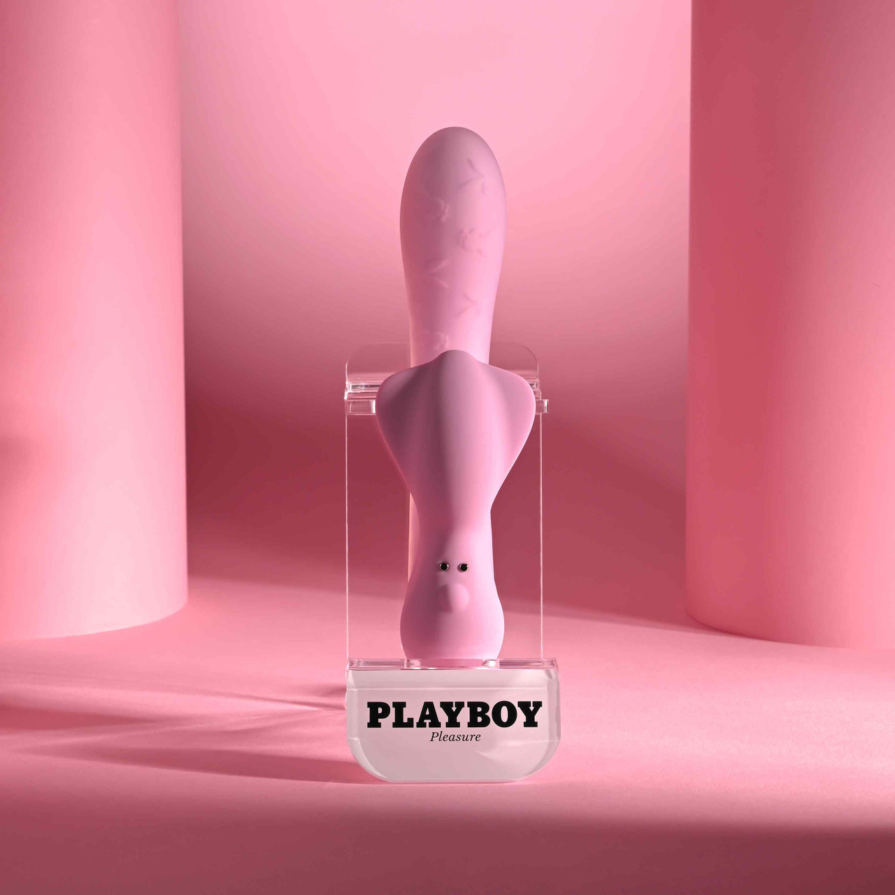 Rabbit Party tonight! Follow the bunny trail to this powerful dual Vibrator that’s got some hopping good features. The flexible, gently curved shaft is covered in Playboy rabbit heads that tickle as you play, not to mention the dual-layered silicone material which has a truly life-like feel you have to experience to believe. But that’s not all – this bunny has more tricks up its sleeve! In a twist on the usual rabbit ears, the stimulator shaft is shaped like a petal to surround the clitoris and drive vibrations deep into that primary erogenous zone for a whole new level of satisfaction. With a chunky handle and easy 1-button control for both motors simultaneously, you’ve hit the bunny jackpot!