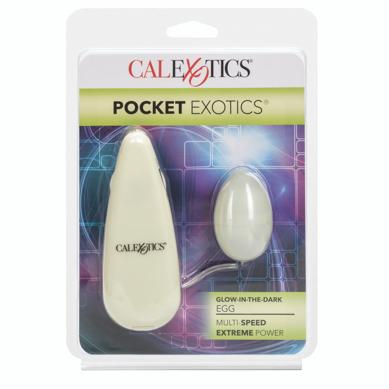 Glow In The Dark Pocket Exotics Vibrating Egg from California Exotic Novelties is a versatile compact powerful stimulator. What pleasures will you find in the dark? With our Glow in the Dark Pocket Exotics Vibrating Glowing Egg, you will illuminate oh so many sensual options. This exciting multi-speed, glow in the dark egg stimulator is pocket sized, so you can glow, go, and gratify with ease. For maximum glow, all you have to do is expose our egg to any light source, and the super, sexy soft shine will stay with you while you achieve the peak of any bedroom adventure. It is as safe as it is thrilling. Designed for the ultimate in excitement, this vibrating glowing egg offers high quality, durable, and supremely sensual fun. Let our stimulating egglight up your path to satiation, whether you are enjoying this ring solo or while pleasuring a partner. So what are you waiting for? Get ready to feel the glow. Pocket sized vibrating egg that glows in the dark. Safe and pure for body and pleasure. Made using phthalate free, non-toxic materials Polypropylene PP, ABS Plastic. Egg vibrator measures 2 inches long by 1.25 inches wide. Bulk weight 2.3 ounces. Vibrating sex toy requires 2 AA batteries, not included. Do not leave batteries in the vibrator between uses. Always clean before and after use plus between partners. 1 year warranty. Category: For Women, Bullet, Beads and Balls, Bullets. Glow In The Dark Pocket Exotics Vibrating Egg is a registered trademark for California Exotic Novelties. Sex toys and sexual wellness. Categories: Vibrators, Bullets, Eggs, Sex Toys for Women, Men, Couples, Vibrating Bullets and Eggs. 2023.