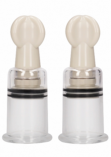 Pumped Nipple Suction Set Medium Transparent from Shots Toys. Feel the stimulation of suction with these Nipple Cups. These suckers can be easily applied and twisted to temporarily increase the size of the nipples. Perfect for use during solo or partner p