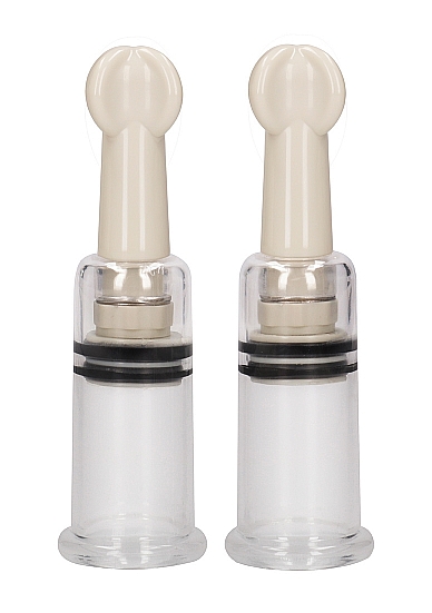 Pumped Nipple Suction Set Small Transparent from Shots Toys. Feel the stimulation of suction with these Nipple Cups. These suckers can be easily applied and twisted to temporarily increase the size of the nipples. Perfect for use during solo or partner pl
