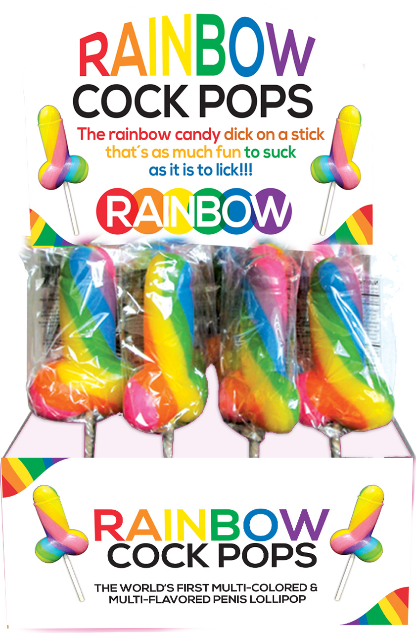 Rainbow Cock Pops 12 Pieces Display Point of Purchase. How many licks to the bottom of the stick? Take you tastes over the erotic rainbow with these multiple color pecker party pops. Sure to make any party come alive, with their bright neon Color Stripes