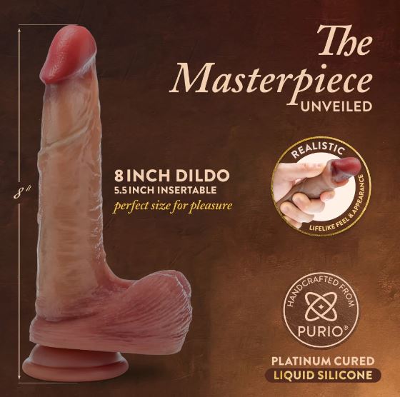 Discover your sexual enlightenment with Raphael 9.5 inch and Davinci, 8-inch realistic dildo from our Renaissance line. This realistic sex toy transcends the art of realism, designed with all the finer details of a masterpiece painting. Raphael is handcrafted with Sensa Feel®, our exclusive, dual density technology. It is firm and erect at its core, with a Purio® liquid silicone outer layer that is soft and sensuous, making it look and feel just like a real erection. Wrap your hands around the flexible shaft and indulge in naturally sliding foreskin. Raphael is made with firm and soft realistic balls, that are easy to squeeze or bounce on top of for a smooth and comfortable ride. It also comes equipped with a strong suction cup base that is harness compatible for strap on play, providing many ways to express your pleasure hands-free or with a partner. This silicone dildo is perfect for beginners or advanced users, 100% body safe, phthalate-free and easy to clean. Let Raphael transport you to a “golden age” of sensational pleasure.