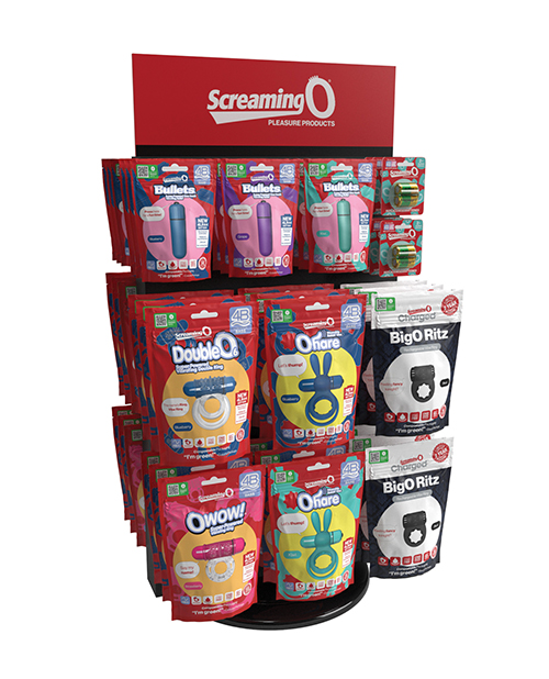 Screaming O Spring 2023 New Products Counter Display. Display includes: Size 4LR44 Batteries 12 count. A new battery for 4B and 4T Bullet Vibrators. New and improved battery with longer lasting power. Introducing the new and improved 4LR44 batteries to power our new line of bullet vibes! Screaming O 4B Bullet Vibrators 12 count. Sugar powered one touch vibrating bullet Vibrator. Easy to operate just push the black button on the top of the bullet vibrator. Deep rumbling Bass Vibrations. 5 speeds and one pulse pattern. Soft touch silky feel. Compact on the go size. Waterproof and wireless. Screaming O 4B DoubleO 6 4 count. Screaming O 4B Ohare 8 count. Lets thump! Wearable Rabbit Vibrator from Screaming O. Screaming O 4B Owow 4 count. Screaming O 4T Bullet Vibrator 12 count. Screaming O 4T DoubleO 6 4 count. Deep rumbling bass vibration. 5 speeds plus one pulse pattern bullet. Super powered Vibrating Bullet. Reusable. Waterproof vibrations for play outside the bedroom. Screaming O 4T Ohare 8 count. Screaming O 4T Owow 4 count. My Secret Screaming O 4T Panty Vibe 8 count. Play in public. Remote control vibrating bullet. Powerful 10 function bullet vibrator wireless syncs with remote control ring. 5 speeds and 5 pulse patterns. Remote control disguised as a ring for your or your partner’s finger. Charged Big O Ritz 6 count. The luxurious, accessibly priced Charged line is proud to introduce rechargeable capability to one of Screaming Os most popular toys, the BigO, making it the perfect entry level rechargeable vibe ring. Categories: Vibrators, Sex Toys for Couples, Men, Women, Love Rings, Cock Rings, Couple’s Cock Rings, Vibrating Love Rings. 2023.
