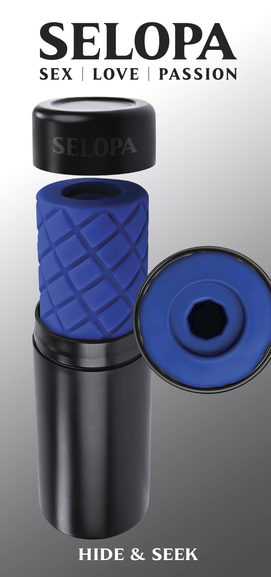 Selopa Love, Sex, Passion Hide and Seek Hand Held Stroker from Evolved Novelties. Designed for hand held cushiony comfort, this quilted stroker features a soft and stretchy beaded inner stroker channel that removes for cleaning. Specifications: size height: 5.5 inches, depth 2.32 inches, width 2.32 inches. Insertable length 4.38 inches, insertable diameter 0.66 inch. Made from body safe materials that are both phthalate free and latex free Thermoplastic Elastomers TPE, ABS Plastic stroker base. Waterproof, non-vibrating stroker. Submersible for bathtub play.