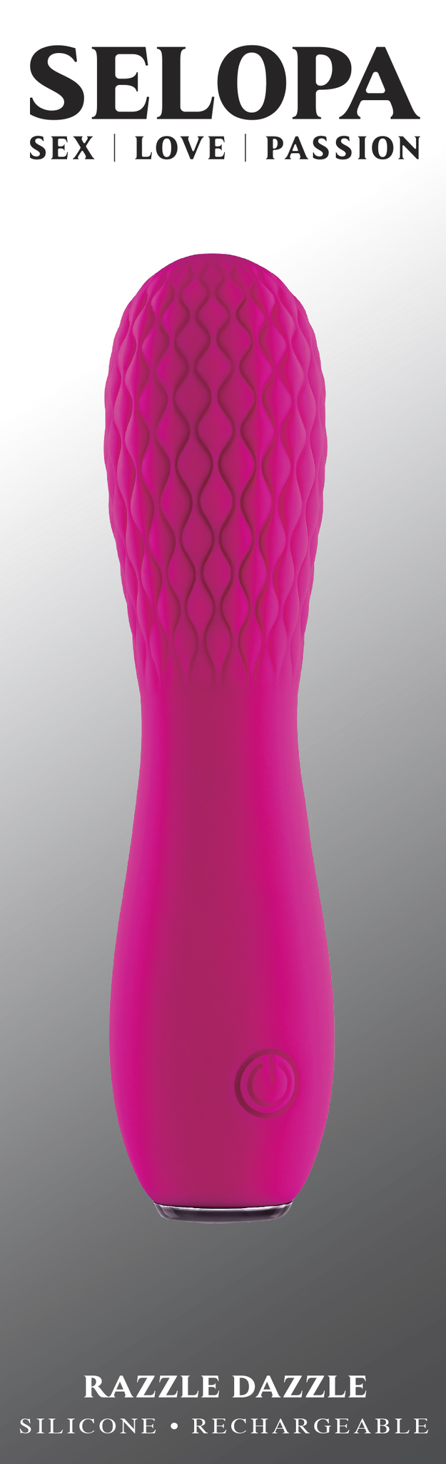 Selopa Razzle Dazzle Pink Vibrator from Evolved Novelties. Sex, love and passion. This petite vertical vibrator is quilted at the gently swelling rounded end for a uniquely cushy feel. Let the flexible shaft move with your body while you experience the pl