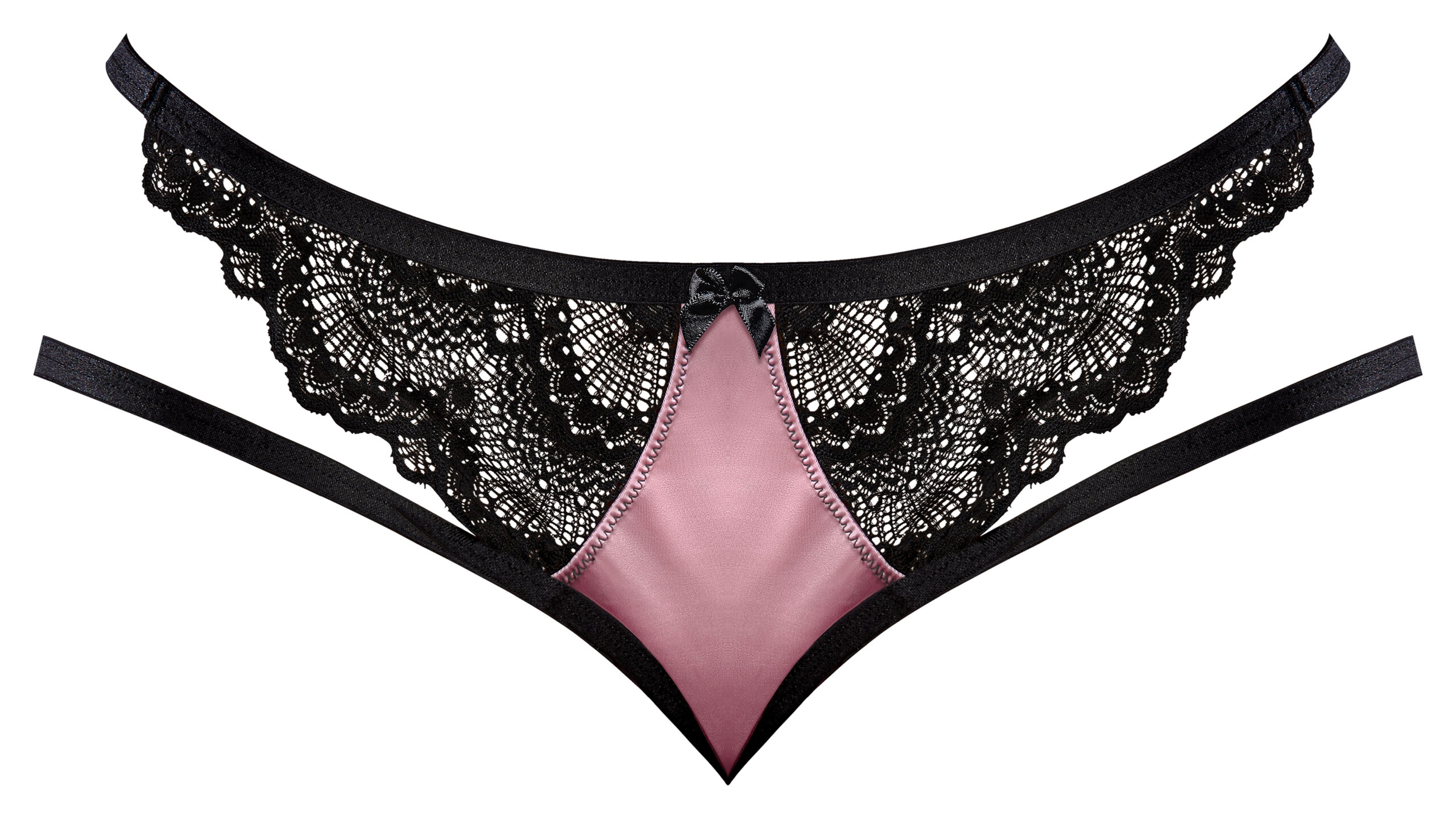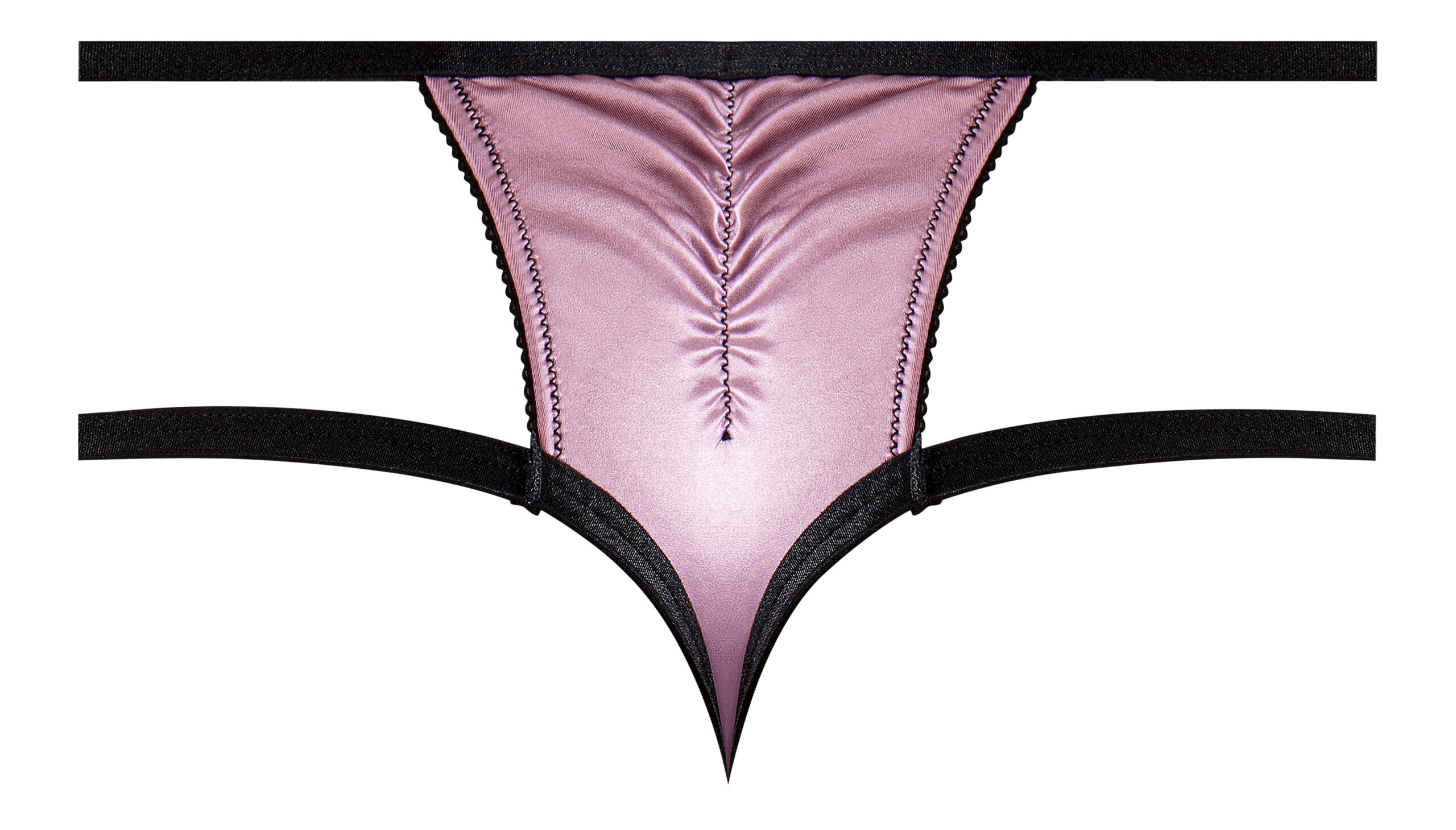 Sensual Desires Panty Mauve L/XL from Magic Silk Lingerie. From the Exposed by Magic Silk collection, this style includes: a lace and satin cheeky panty with extra straps at the hips. Deco inspired black scalloped stretch lace is paired with a rich mauve
