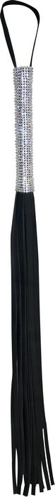 Sex and Mischief Sparkle Flogger. Add some bling to your sting with this vegan leather Sparkle Flogger. Its sparkling handle makes it the perfect accessory to complete your fantasy. Used to gently caress or flog your partner with surety of stroke, this fl