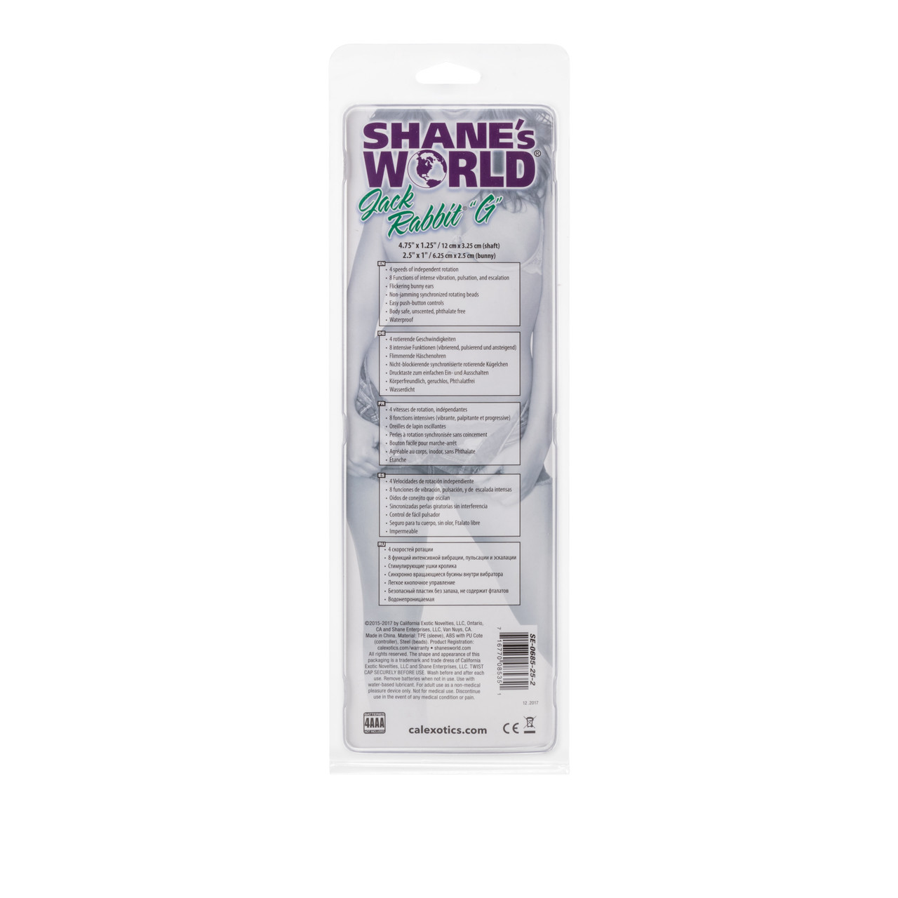 Shane’s World line from California Exotic Novelties Jack Rabbit G Vibrator Purple. Talk about an energetic Rabbit! The Shane’s World Jack Rabbit G Vibrator is perfectly sized for beginner, intermediate, and advanced users alike. This personal massagers