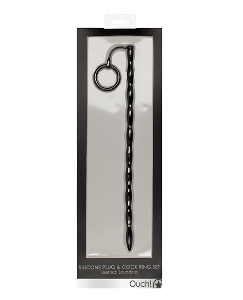 Ouch Silicone Plug and Cock Ring Set Urethral Sounding Black from Shots Toys. Ouch! Introduces a new line of toys for urethral explorers! If urethral sounding is your kink, then let these smooth probes deliver the ultimate pleasure! The urethra is lined w