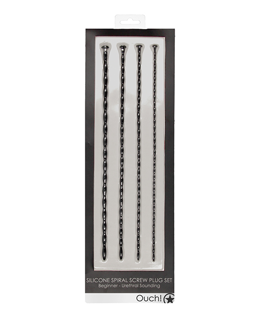 Ouch Silicone Spiral Screw Plug Set Beginner Urethral Sounding Black from Shots Toys. Ouch! Introduces a new line of toys for urethral explorers! If urethral sounding is your kink, then let these smooth probes deliver the ultimate pleasure! The urethra is
