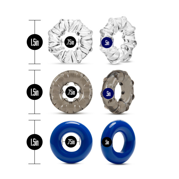 Stay Hard Triple Stretch 3 Pack Cock Rings from Blush Novelties. Play hard, play comfortable! The Stay Hard Triple Stretch 3 Pack Cock Rings gives you three rings that all feel good, look sexy. Get instant results. Longer, harder erections. Increase stami
