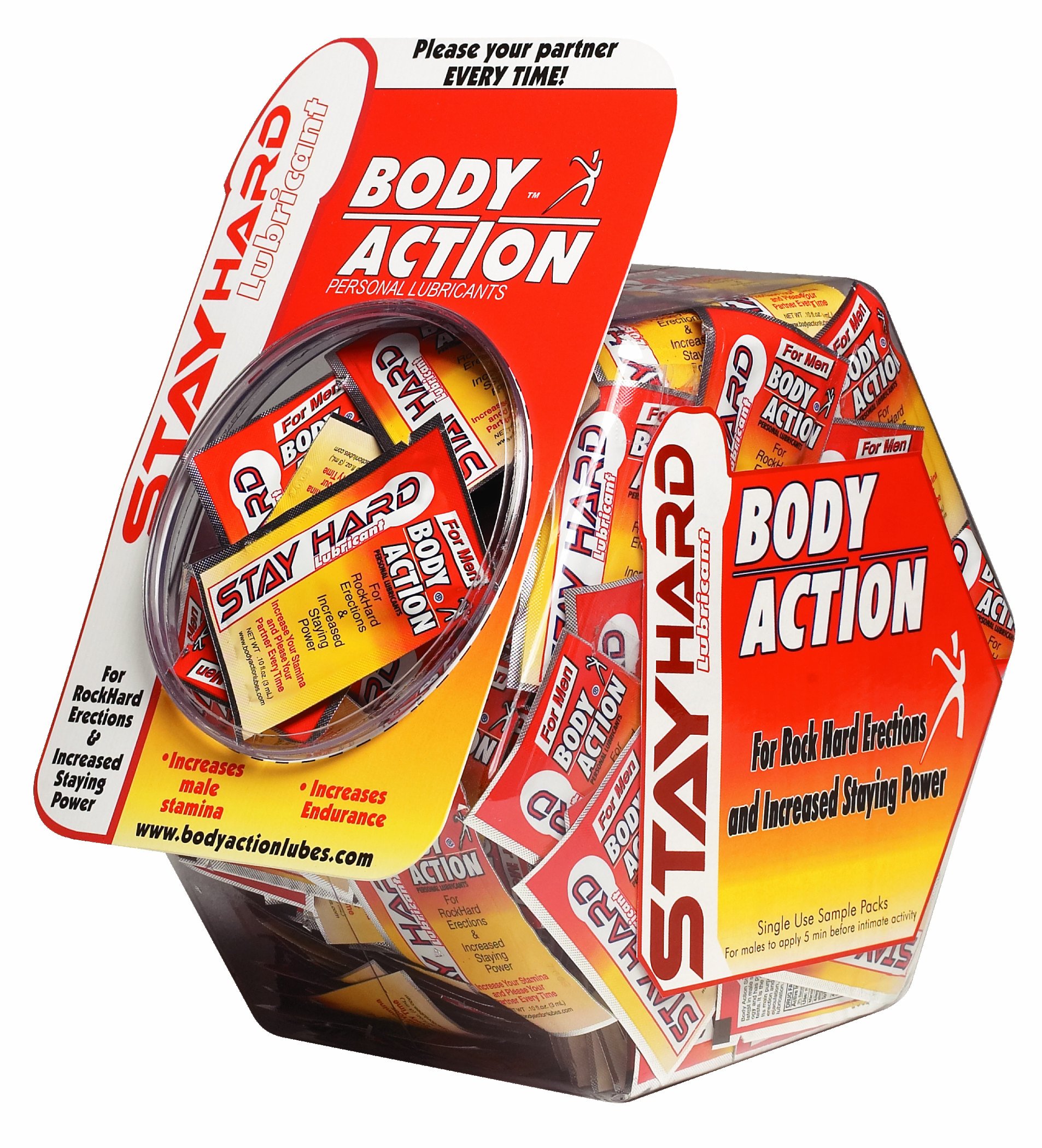Stay Hard Pillow Packs 144 Pieces Display from Body Action Products. Climax Control Lubricant. Stay Hard Lubricant is a water based formulation for men to help increase male stamina. Formulated to help maintain erectile hardness during intimate activity a